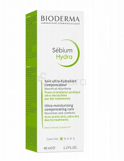 Sébium Hydra est spécialement formulé pour compenser les effets indésirables temporaires des traitements dermatologiques : - les agents hydratants (glycérine) et restructurants biomimétiques (céramides) combattent la desquamation (peau qui pèle) et les tiraillements ; - les propriétés anti-irritation de l’énoxolone et de l’allantoïne apaisent et réduisent les rougeurs