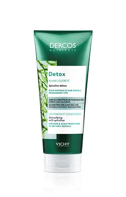 Caractéristiques : Vos cheveux ont tendance à rapidement graisser ? Pour lutter contre l’excès de sébum et prendre soin de vos cheveux à chaque lavage, Vichy a mis au point une innovation Dercos : l’après-shampooing Dercos Detox purifiant. - Vos cheveux sont démêlés tout en délicatesse. - Les cheveux sont brillants et volumineux grâce à une composition équilibrée en nutriments essentiels. Sécurité : - Sans Silicone. - Convient au cuir chevelu sensible. Ingrédients & Principes Actifs Clés : - Spiruline Détox : cette algue bleue, très riche en protéines, vitamines, minéraux et en antioxydants, protège la chevelure des dégâts causés par les radicaux libres et la pollution. Dotée d’une action purifiante, elle élimine toutes les impuretés. Conseils d'Utilisation : Après l’utilisation du shampooing Vichy Dercos Detox pour les cheveux gras, appliquez l’après-shampooing et laissez-le poser 5 minutes sur les cheveux essorés. Vous pouvez ensuite procéder au démêlage et au rinçage. En cas de contact avec les yeux, rincez immédiatement et abondamment. Composition : Les listes d’ingrédients entrant dans la composition des produits de notre marque sont régulièrement mises à jour. Avant d’utiliser un produit de notre marque, vous êtes invités à lire la liste d’ingrédients figurant sur son emballage afin de vous assurer que les ingrédients sont adaptés à votre utilisation personnelle. AQUA / WATER - CETEARYL ALCOHOL - ISOPROPYL MYRISTATE - BUTYLENE GLYCOL - BEHENTRIMONIUM CHLORIDE - GLYCERYL STEARATE - CARTHAMUS TINCTORIUS SEED OIL / SAFFLOWER SEED OIL - CHLORHEXIDINE DIGLUCONATE - CI 42090 / BLUE 1 - CI 47005 / ACID YELLOW 3 - CITRIC ACID - DEXTRIN - GLYCINE SOJA OIL / SOYBEAN OIL - HYDROLYZED LUPINE PROTEIN - ISOPROPYL ALCOHOL - NEOHESPERIDIN DIHYDROCHALCONE - 2-OLEAMIDO-1,3-OCTADECANEDIOL - PENTAERYTHRITYL TETRA-DI-T-BUTYL HYDROXYHYDROCINNAMATE - SODIUM BENZOATE - SODIUM CITRATE - SODIUM PHOSPHATE - SPIRULINA PLATENSIS EXTRACT - PARFUM / FRAGRANCE."